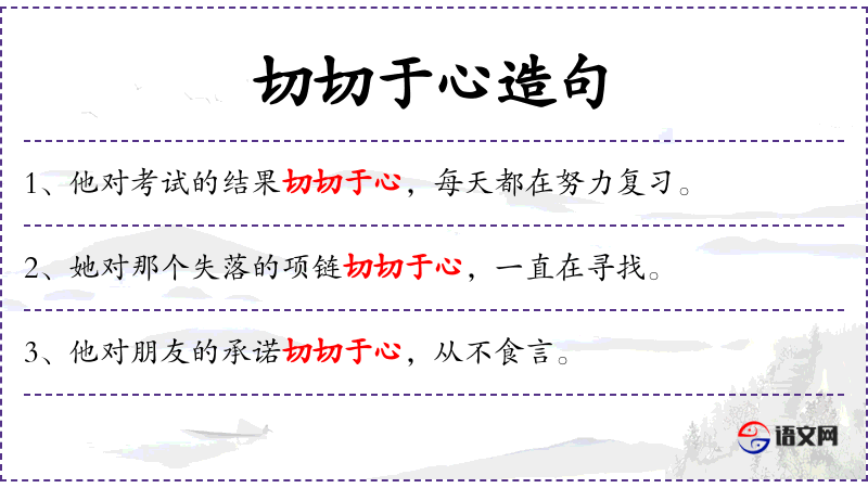 句子中的“切切于心”是一个中文成语,源自古代文学,强调对某事的深切关心和挂念。这反映了中文文化中对梦想和目标的重视,以及对坚持和努力的推崇。