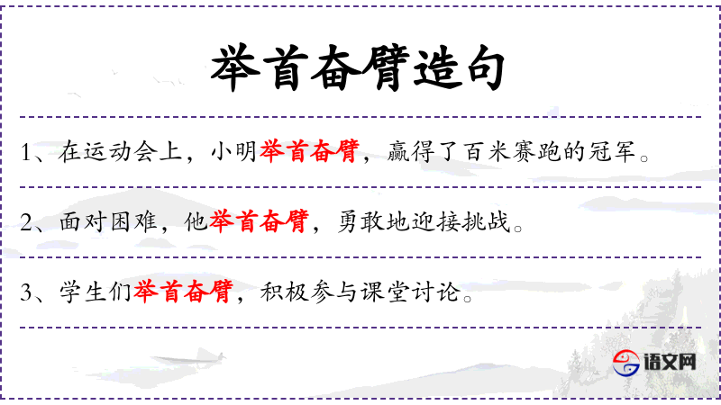 句子:“在艺术节上,孩子们举首奋臂,展示他们的才艺。”