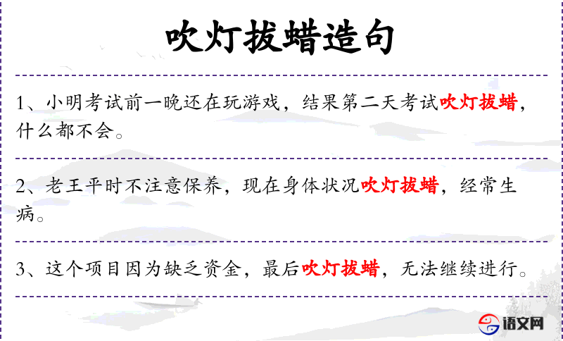 - 吹灯拔蜡:成语,比喻事情彻底失败或情况非常糟糕。