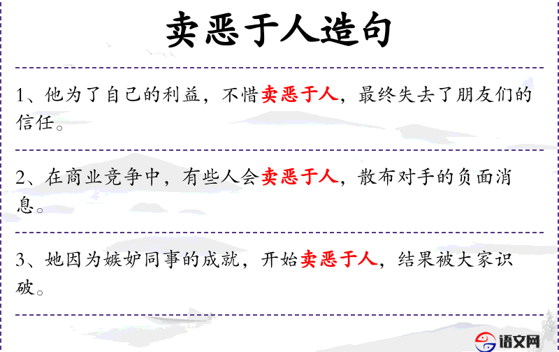 - 在职场环境中,不同文化背景的人可能对“卖恶于人”的行为有不同的理解和反应。因此,理解并尊重不同文化中的道德标准是重要的。