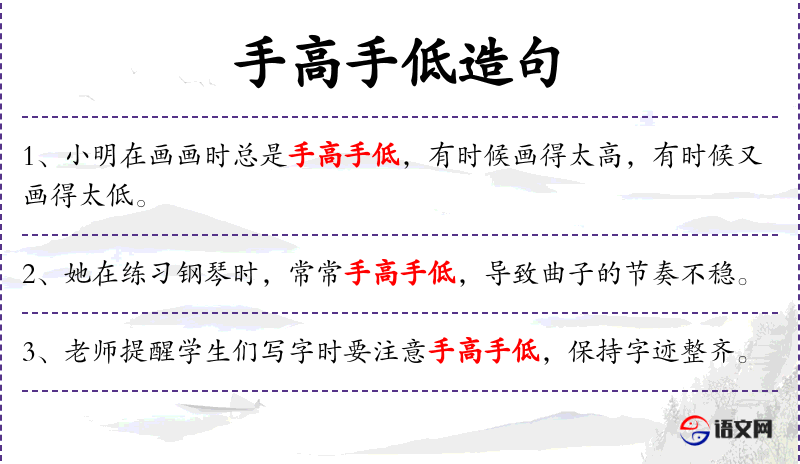- 手高手低:形容词短语,形容投篮动作不准确。