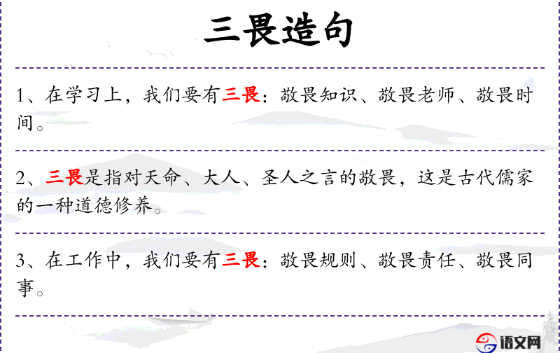 1. 【三畏】 - 儒家指畏天命,畏大人,畏圣人之言。
