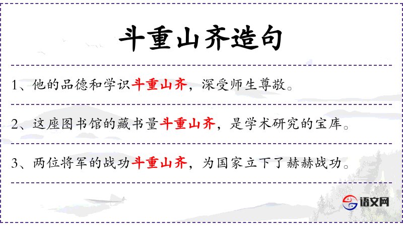 4. 【斗重山齐】 像北斗星一样令人敬仰,如泰山一样崇高。形容人德才兼备,享有很高的威望。