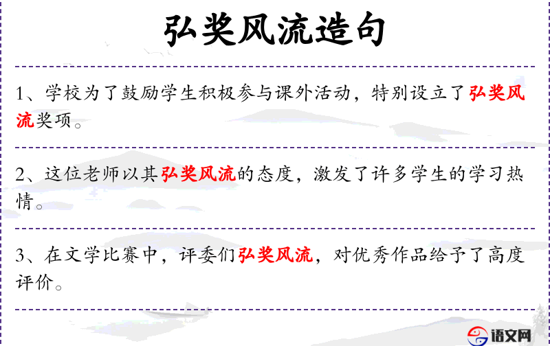 - 弘奖风流:可能源自古代对文人才子的表彰,现代可能指对文化领域杰出人物的表彰。