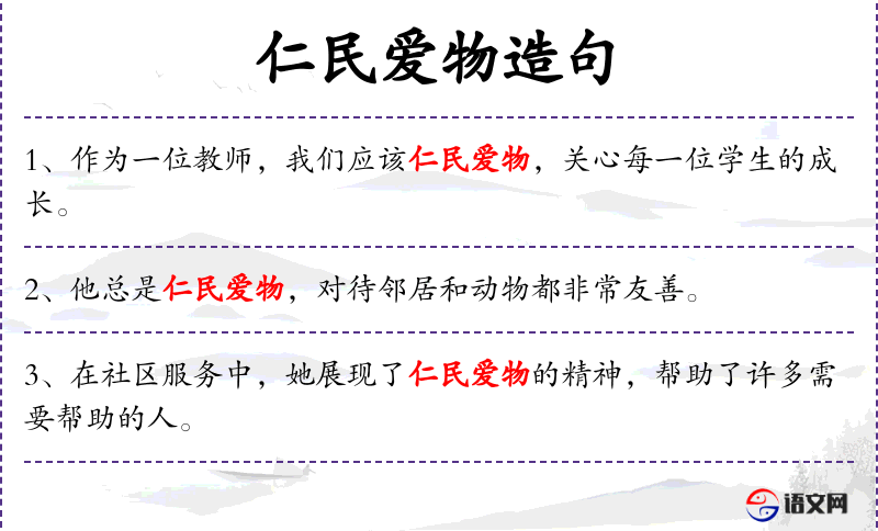 - 仁民爱物:成语,意为对人和物都充满仁爱之心。