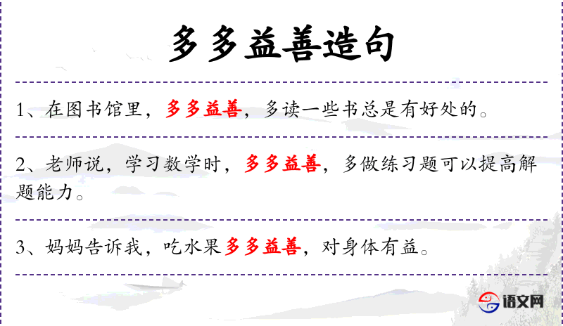 - 多多益善:越多越好,表示鼓励多做某事。