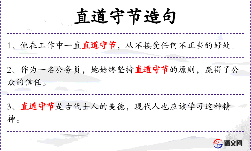 1. 【直道守节】 - 节:节操。处事公正,遵守节操。