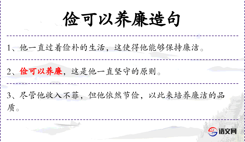 - 俭以养廉:通过节俭来培养廉洁的品德。