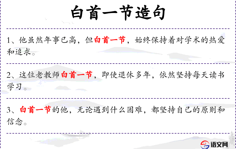 1. 【白首一节】 - 指年虽老而志节不衰。