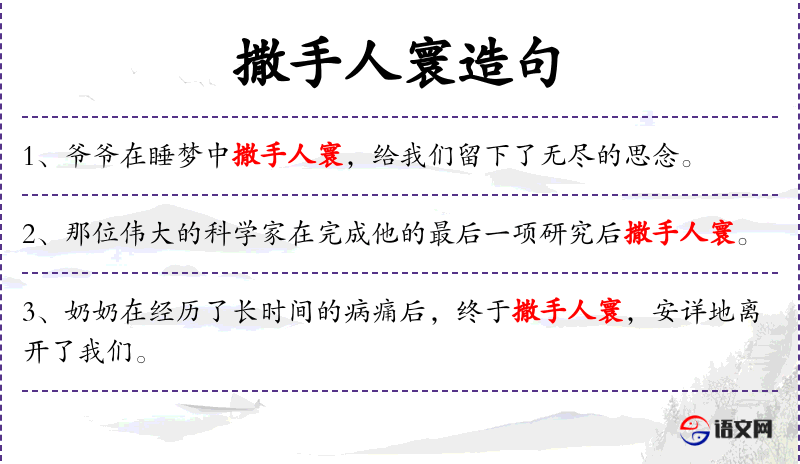 - 成语“撒手人寰”在**文化中常用来委婉地表达死亡。