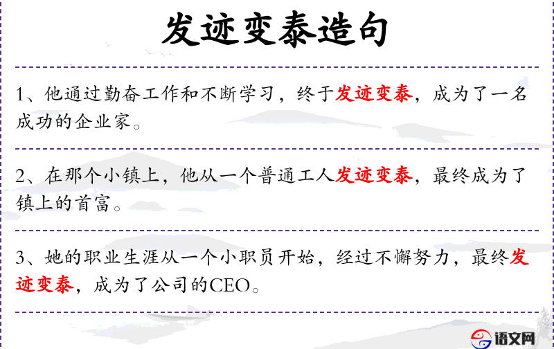 - 文化意义:句子中的“发迹变泰”体现了**传统文化中对个人奋斗和成功的重视。