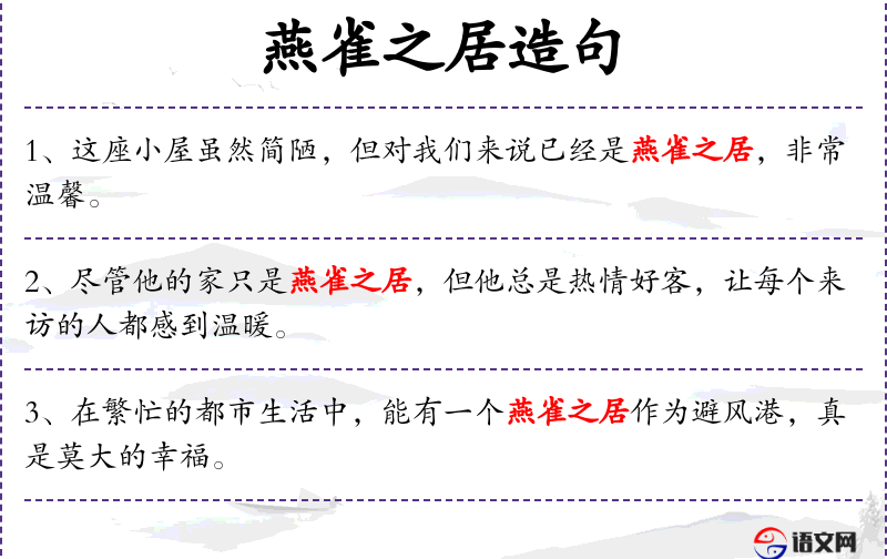 5. 【燕雀之居】 比喻简陋的庐舍。