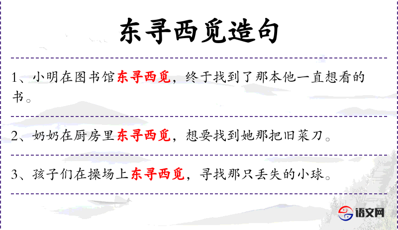 - 东寻西觅:成语,形容到处寻找。