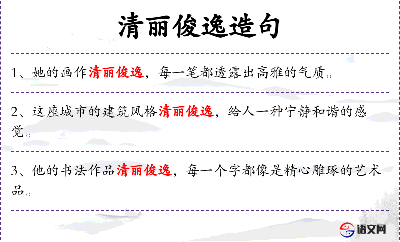 3. 【清丽俊逸】 - 指诗文清美新颖,不落俗套。