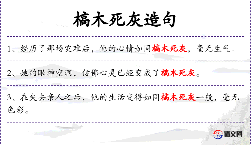1. 【槁木死灰】 - 枯干的树木和火灭后的冷灰。比喻心情极端消沉,对一切事情无动于衷。