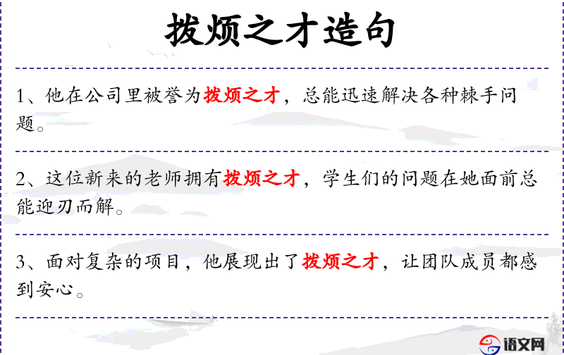 - 拨烦之才:指解决复杂问题的能力,特别是处理烦琐事务的才能。