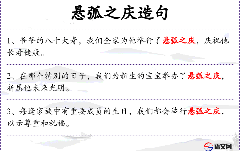 - 变化句式:我们会在家族中重要成员生日之际,举行一场悬弧之庆,以此来展示我们的尊重和祝福。