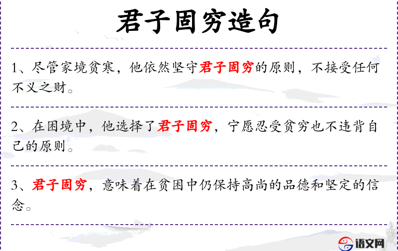 - 君子固穷:出自《论语》,意为君子在贫穷时也能坚守原则。