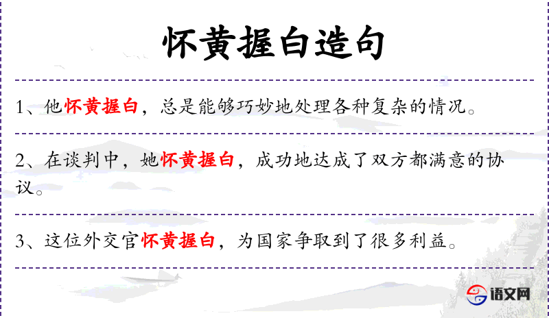 成语“怀黄握白”:这个成语源自**古代,形容一个人掌握大权和财富。在现代语境中,它仍然用来形容一个人在某个领域具有极高的权威和影响力。