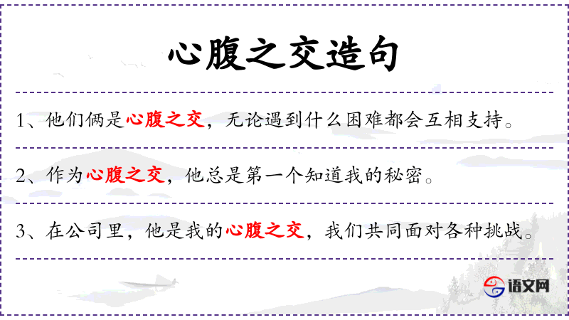 - 心腹之交:指非常亲密的朋友或信任的人。