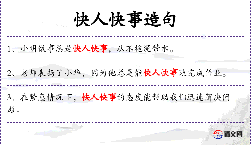 - 宾语:快人快事、效率