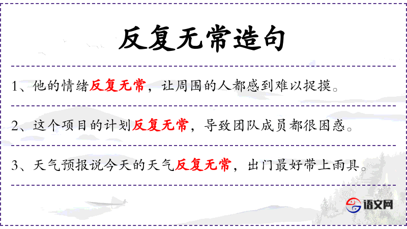 - 反复无常:形容词短语,表示变化不定,不稳定