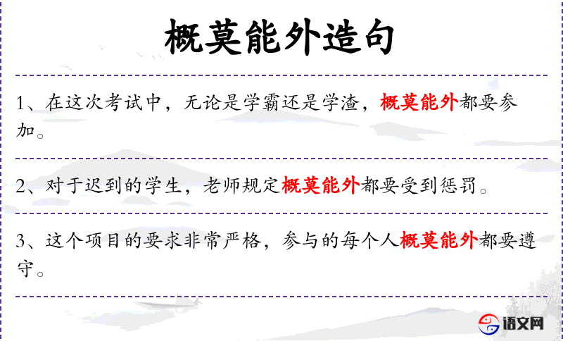 1. 【概莫能外】 - 概:全。一概不能除外。指都在所指范围之内。