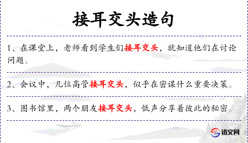 - 礼貌用语:在这个语境中,使用“接耳交头”这样的表达方式,显得亲切而不失礼貌。