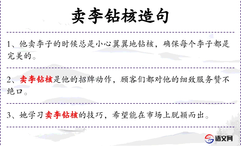 句子:“她学*卖李钻核的技巧,希望能在市场上脱颖而出。”