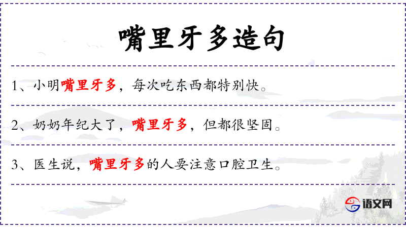 句子:“奶奶年纪大了,嘴里牙多,但都很坚固。”