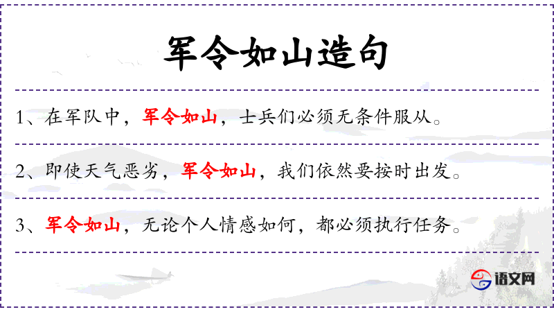 - 士兵们必须无条件服从军令,如同山一般不可动摇。