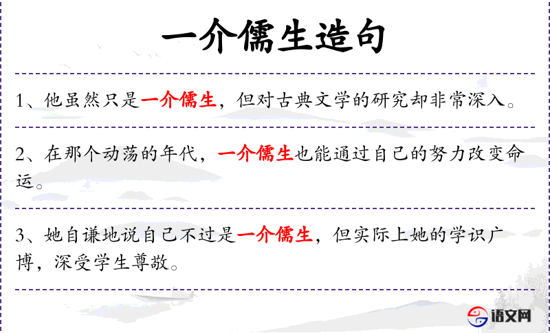 - 主语:一介儒生