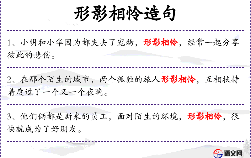 - “形影相怜”这个成语源自**传统文化,强调人与人之间的同情和理解。