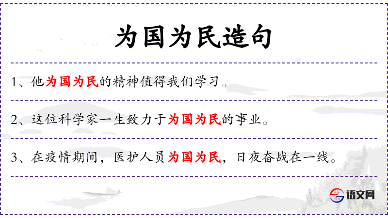 - 为国为民:为了国家和人民的利益。