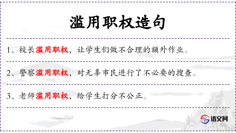 5. 【滥用职权】 指过分地或非法地行使自己掌握的权力。