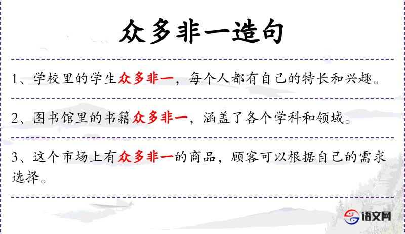 1. 【众多非一】 指类别甚多,不止一种。