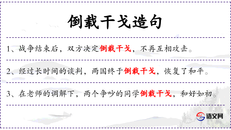 - 宾语:倒载干戈,放下过去的恩怨,重新开始