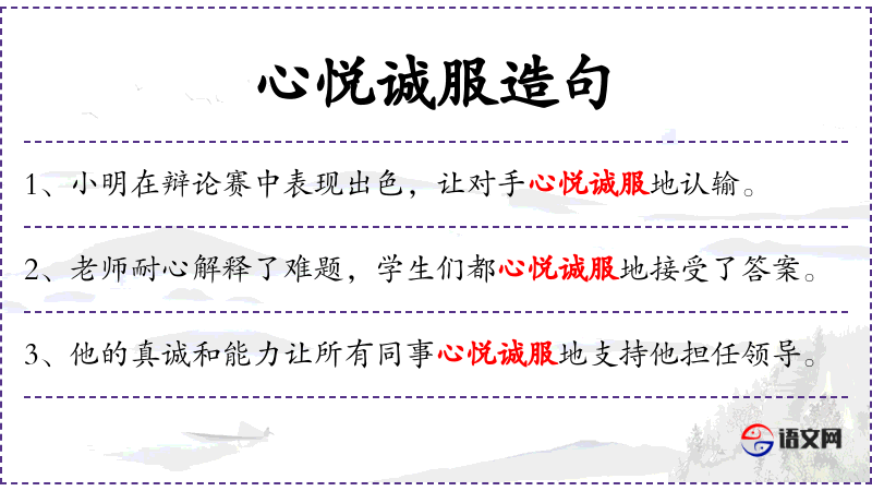 - 心悦诚服:这个成语体现了**文化中对说服效果的高标准,强调不仅在理性上接受,还在情感上感到满意。