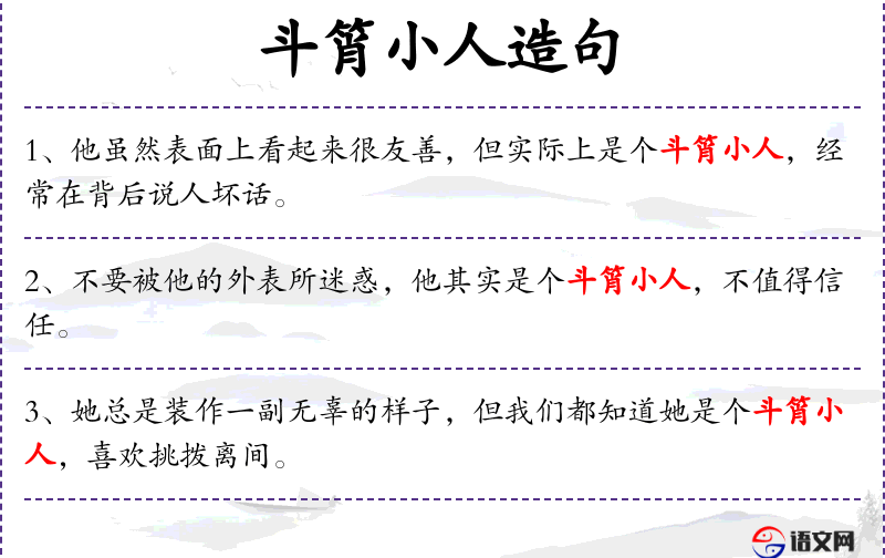 - 斗筲小人:指心胸狭窄、阴险狡诈的人。