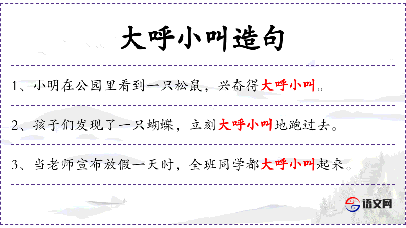 - 大呼小叫:形容声音大而杂乱,表示兴奋或激动。