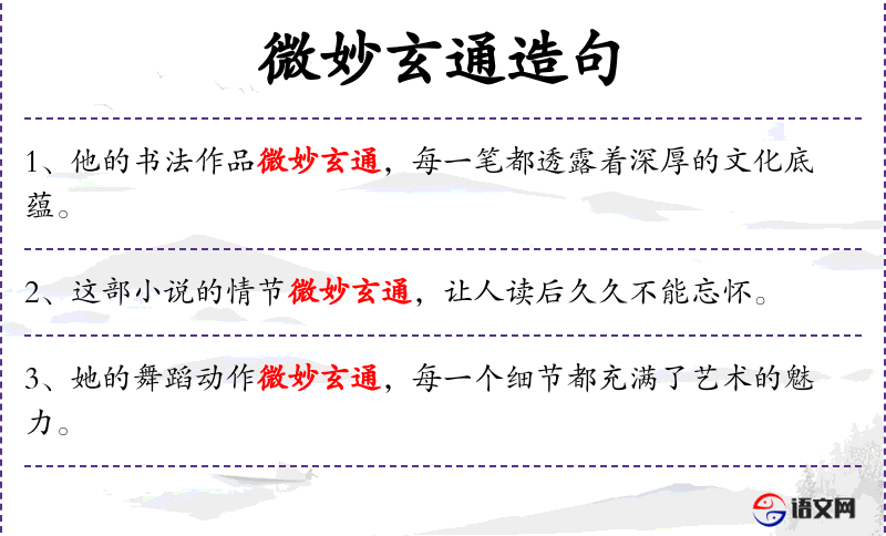 - 微妙玄通:形容词短语,形容技巧非常高超,难以捉摸。