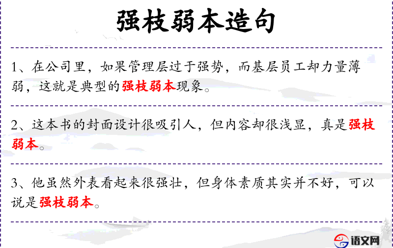 - 成语:使用了成语“强枝弱本”来总结前面的内容,意思是表面上强大但实际上基础*弱。