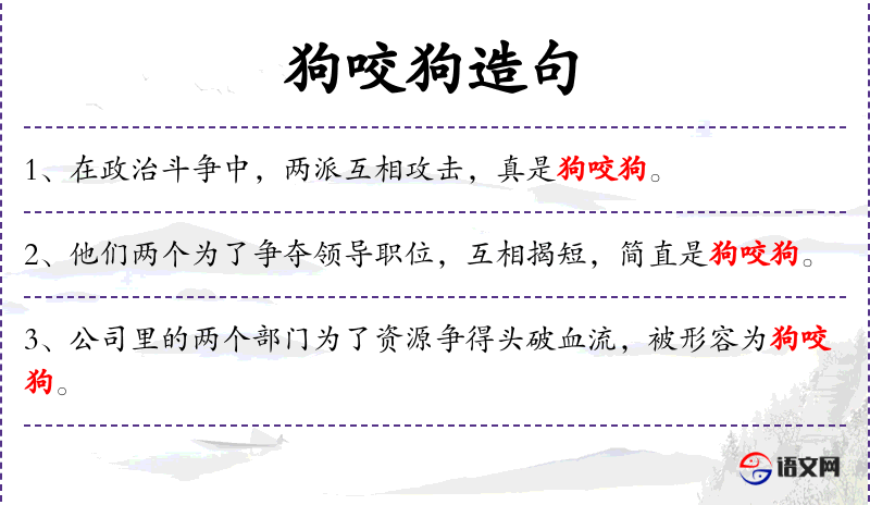 3. 【狗咬狗】 - 比喻坏人之间互相攻击。