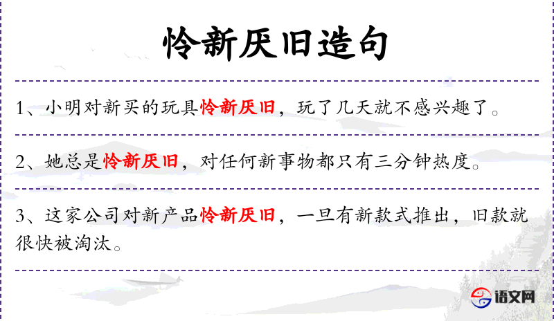 - “怜新厌旧”是**文化中的一个成语,反映了人们对新旧事物的态度。