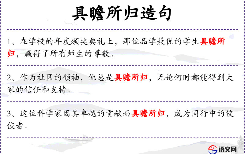 - 补语:具瞻所归(补充说明主语的状态或结果)