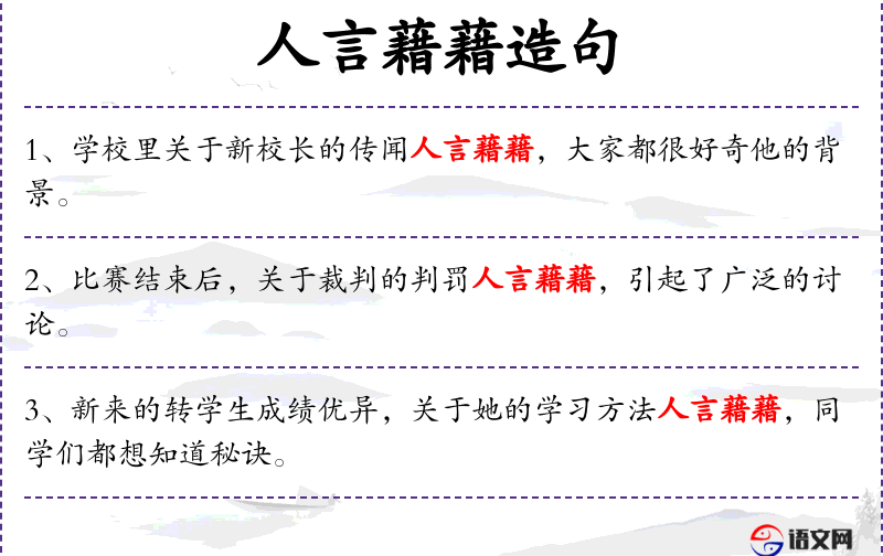 句子:“学校里关于新校长的传闻人言藉藉,大家都很好奇他的背景。”