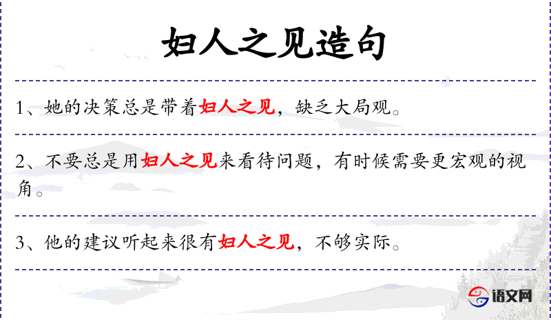 句子:“不要总是用妇人之见来看待问题,有时候需要更宏观的视角。”