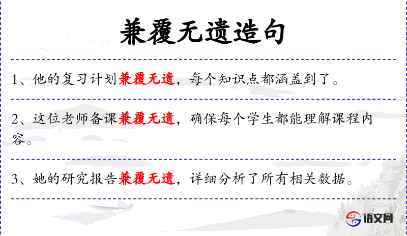 - 兼覆无遗:意指全面覆盖,没有遗漏。