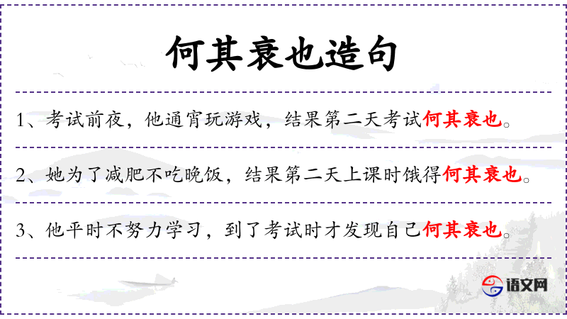 句子:“他因为熬夜看球赛,第二天工作时精神何其衰也。”