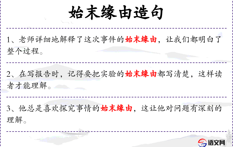 - 始末缘由:事情的起因和结果。
